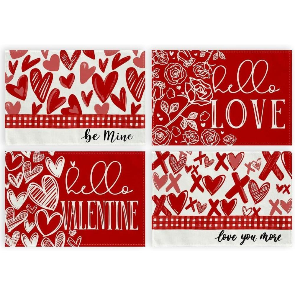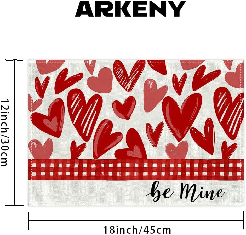 imageARKENY Mothers Day Placemats 12x18 Inches Set of 4 Heart Love Farmhouse Burlap Red Buffalo Plaid Indoor Anniversary Wedding Valentines Table Decorations for Home Party AP22418